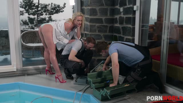 Pool Repair Men Take Turns DP’ing Sexy Blonde Mother & Daughter
