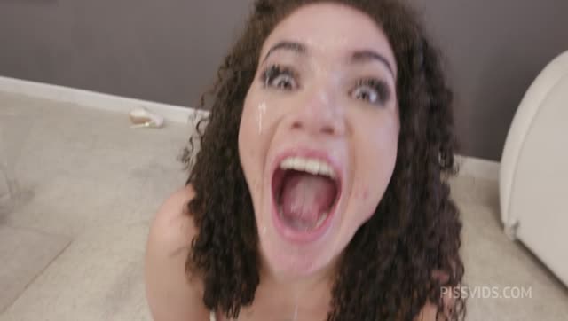 WET MEGA GANGBANG! Beautiful teen Megan Love gets powerful anal fucking with double anal penetration and piss drinking from six huge cocks