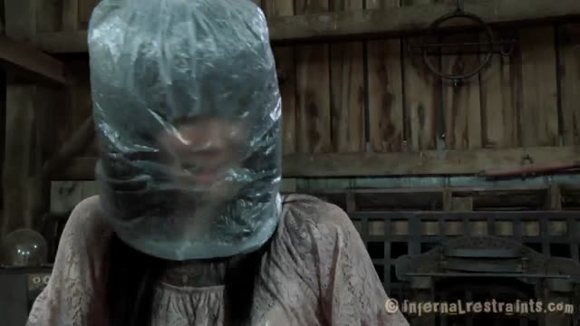 Lanky fit redhead Cici Rhodes hogtied on a box and made to service cocks! Punishing sloppy BJs!